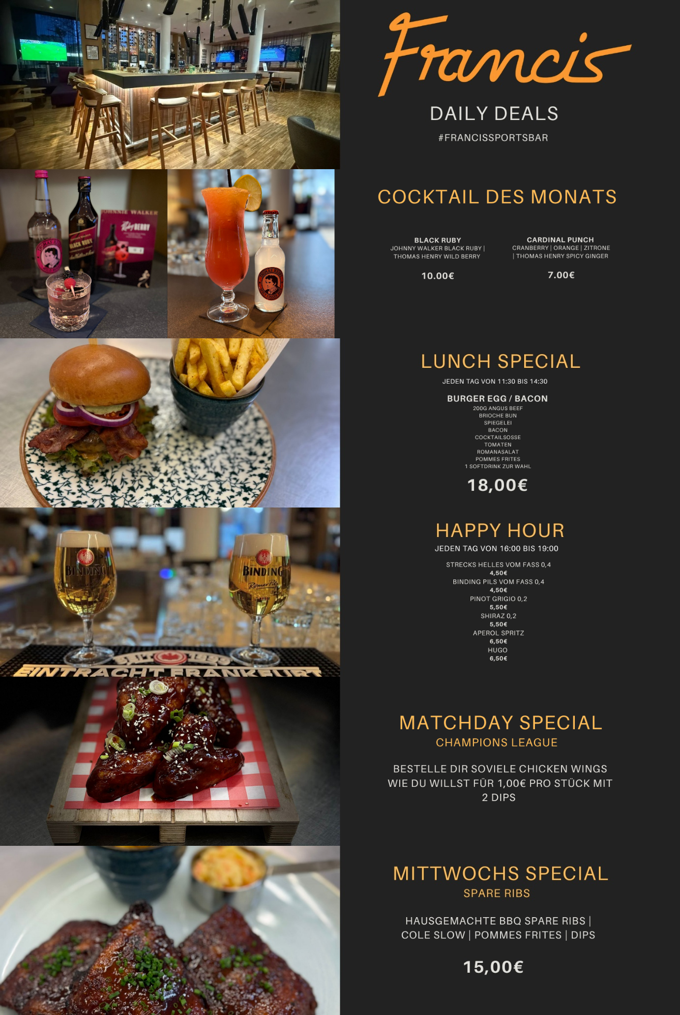 Menu Check out our daily specials and click on the links below to view our menu options. Drinks Menu Food Menu